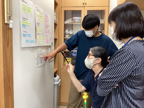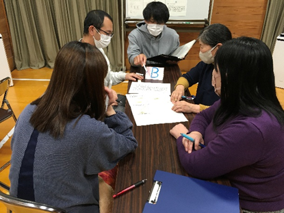 今回は「わいせつ行為等」をテーマに、研修用事例集のケースを用いて、事故発生の背景や当事者・同僚としての行動など立場を分けて考えました。グループで話し合ったことをお互いに発表し合い、わいせつ行為等を未然に防ぐ対応策を確認することができました。