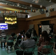 テーマ幕は、ランタンをイメージして児童生徒と教員が協力しながら作成しました。